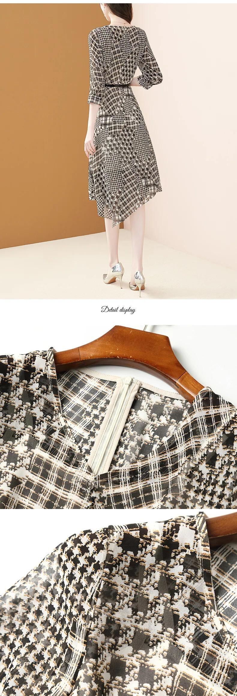 送料無料 アパレル EVNISI Mode Chiffon Druck Kleid Frauen Sommer Frühling 2022 Neue e Spitze-up Unregelmäßige Midi Kleider V-ausschnitt Vestidos シフォン AE12125556695433557519 | mihatudai(みはつばい)ネットショッピングならmihatudai