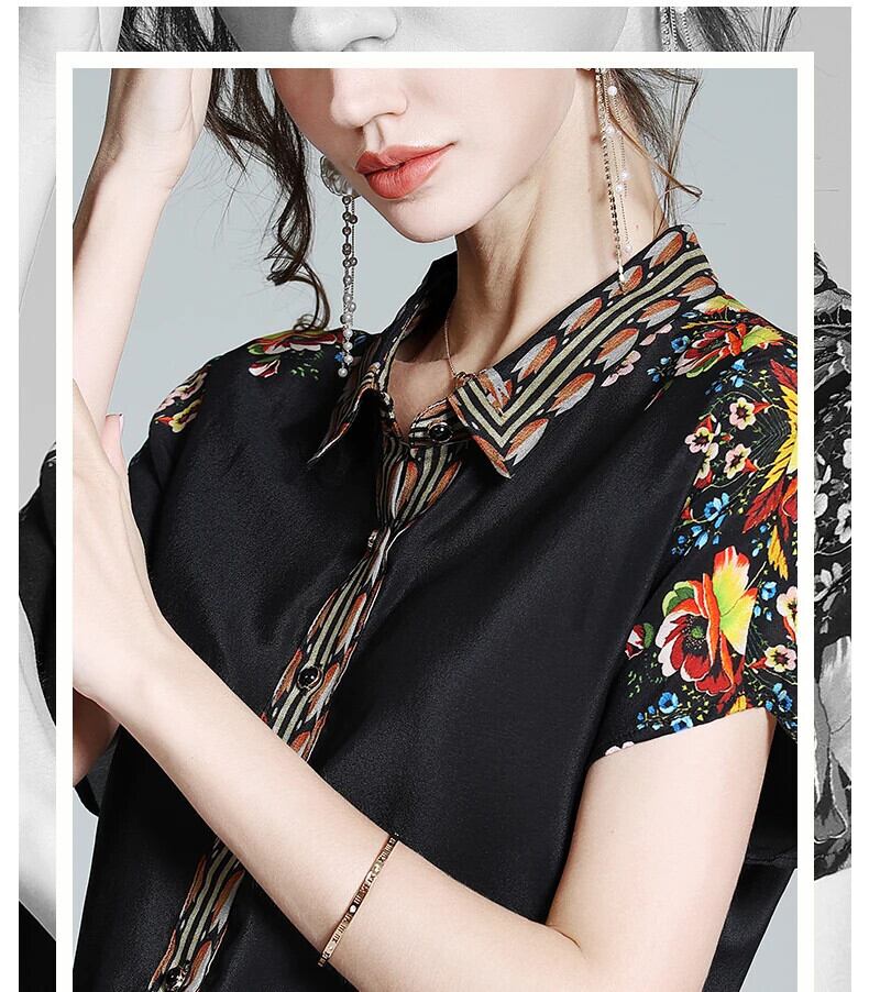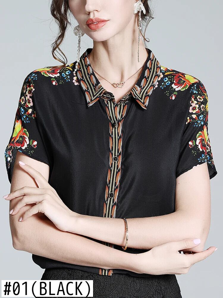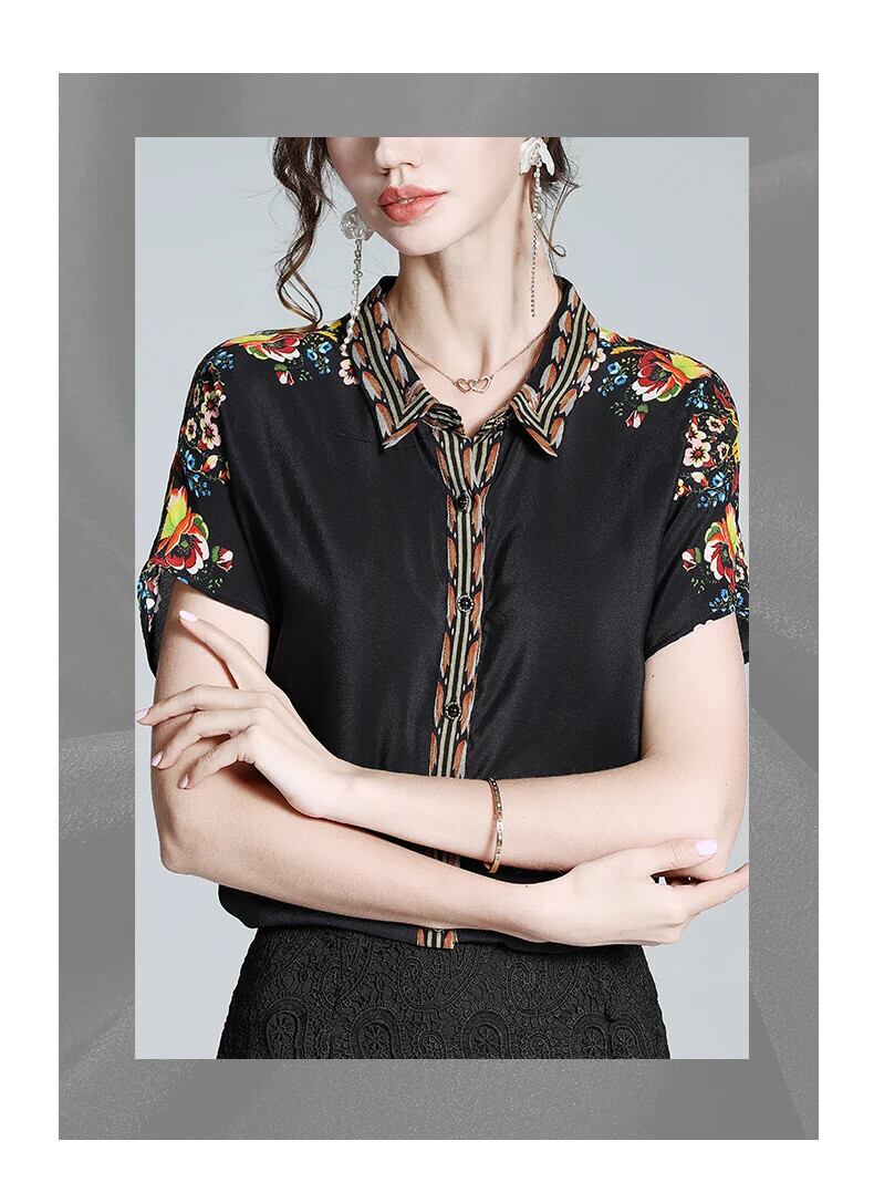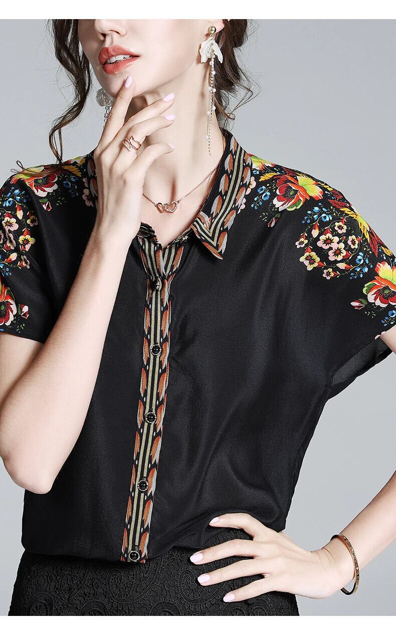送料無料 アパレル EVNISI Schwarz Gedruckt 花柄シルクシャツ Frauen 2022 サマーノイエヴィンテージトップボタンアップ Lose シフォン Bluse Büro Dame トップス ビンテージ AE12125556679706170584 | mihatudai(みはつばい)ネットショッピングならmihatudai