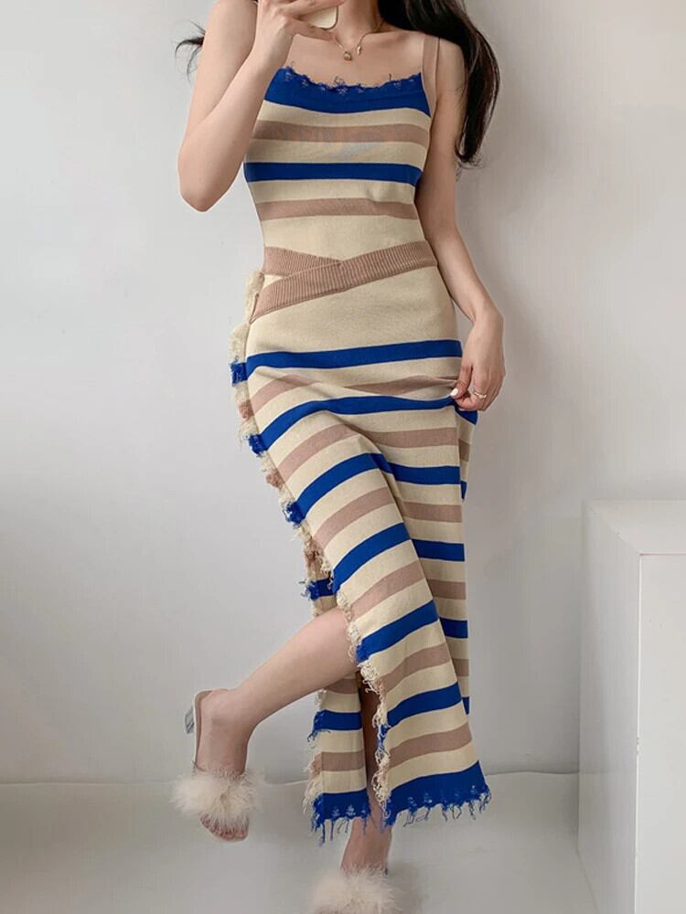 送料無料 アパレル EVNISI Streifen Splice Gestrickte Hosenträger ボディコン Kleid e Split ストリート モード Kleider パーティー Urlaub Vestido AE12125556691685283714 | mihatudai(みはつばい)ネットショッピングならmihatudai