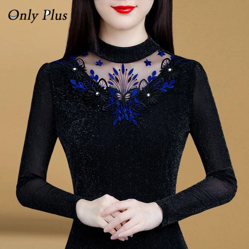 送料無料 アパレル EVNISINet Garn ヴィンテージ Bodenbildung Bluse Frauen Herbst Winter Langarm Stickerei Schlank Alle-match-Pullover Elastische Bluse ウィンター 冬物 ビンテージ AE12125556619478021751 | mihatudai(みはつばい)ネットショッピングならmihatudai