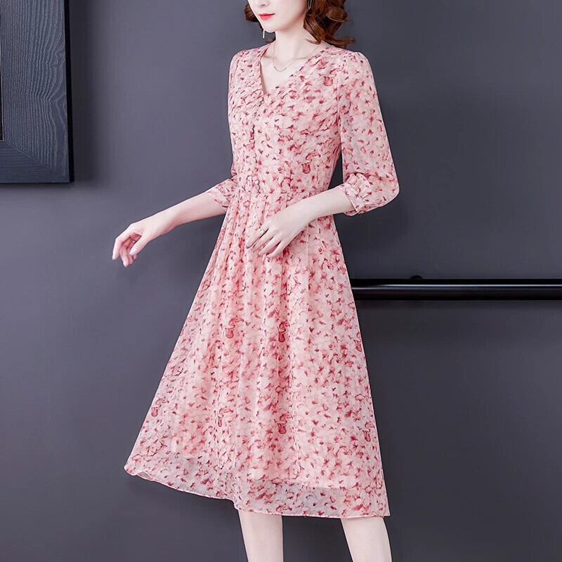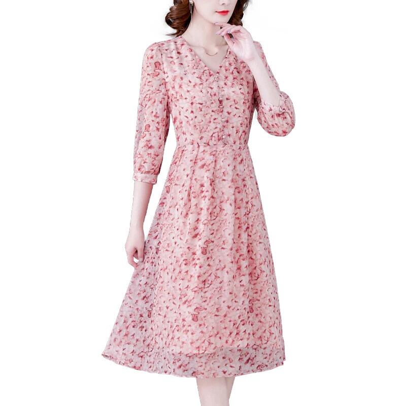 送料無料 アパレル EVNISI フローラル シフォン プリント Rosa Kleid Für Frauen Herbst Mode Elastische Taille Schlank V-ausschnitt Böhmischen Urlaub Kleider 花柄 AE12125556642514346183 | mihatudai(みはつばい)ネットショッピングならmihatudai