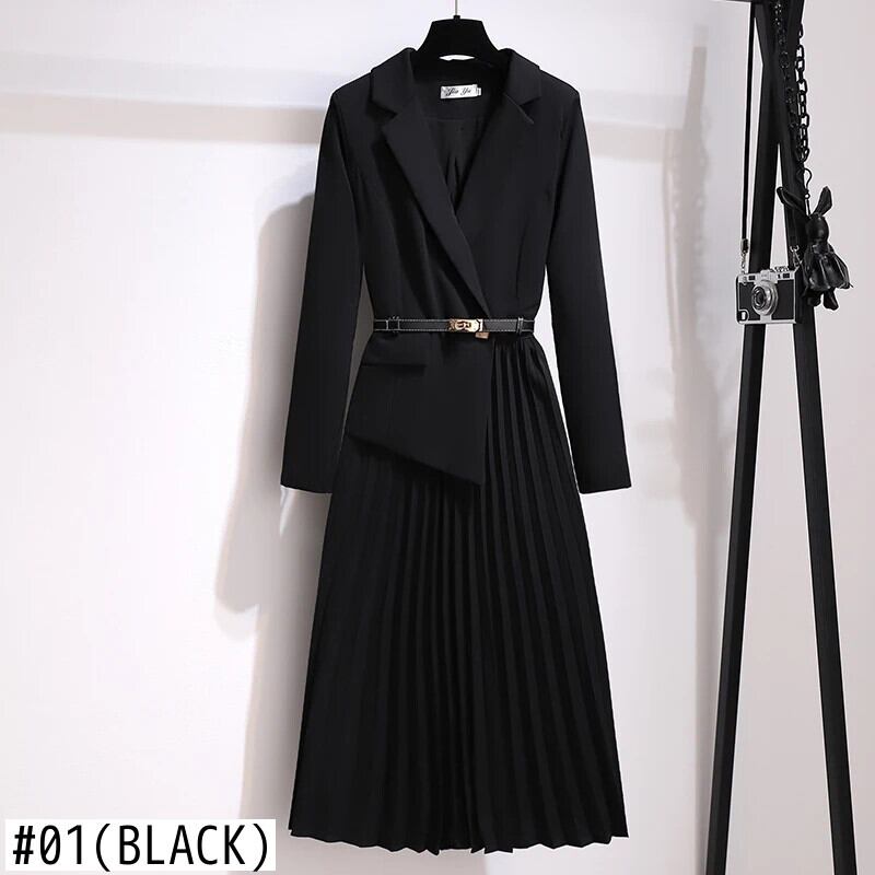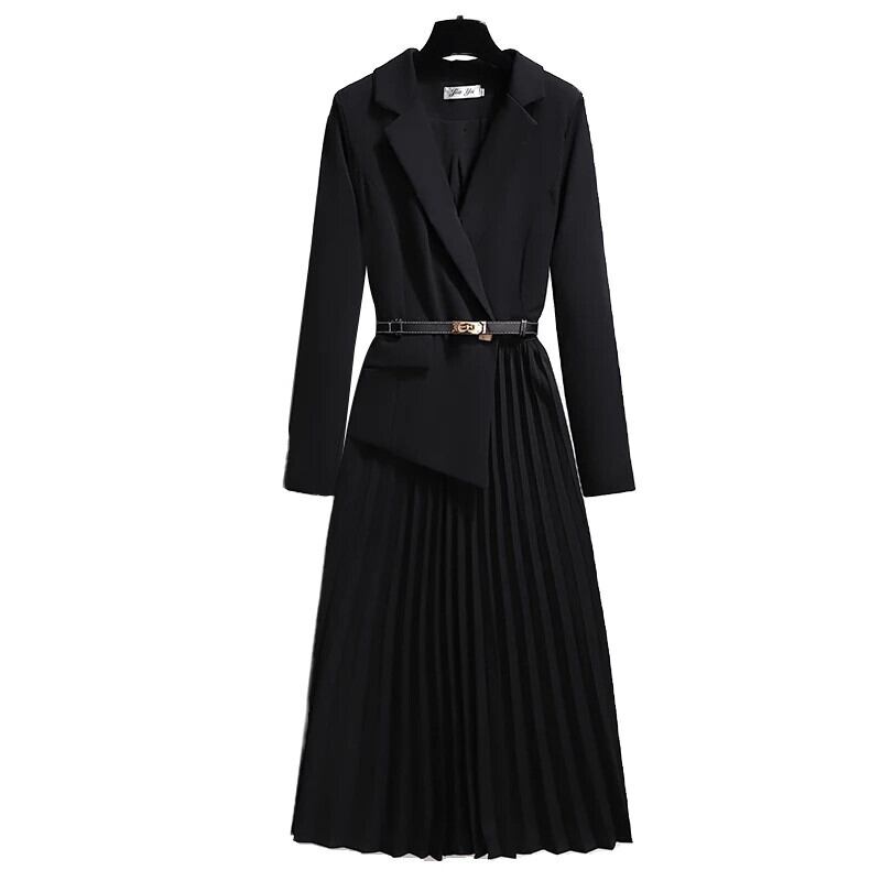 送料無料 アパレル Evnisi Frauen gefälschte zweiteilige Set A-Linie Kleidelegante lange Ärmel Büro Anzug Kleider Party Frauen Plissee Vestido Herbst Winter エレガント ウィンター 冬物 AE12125556631424988506 | mihatudai(みはつばい)ネットショッピングならmihatudai
