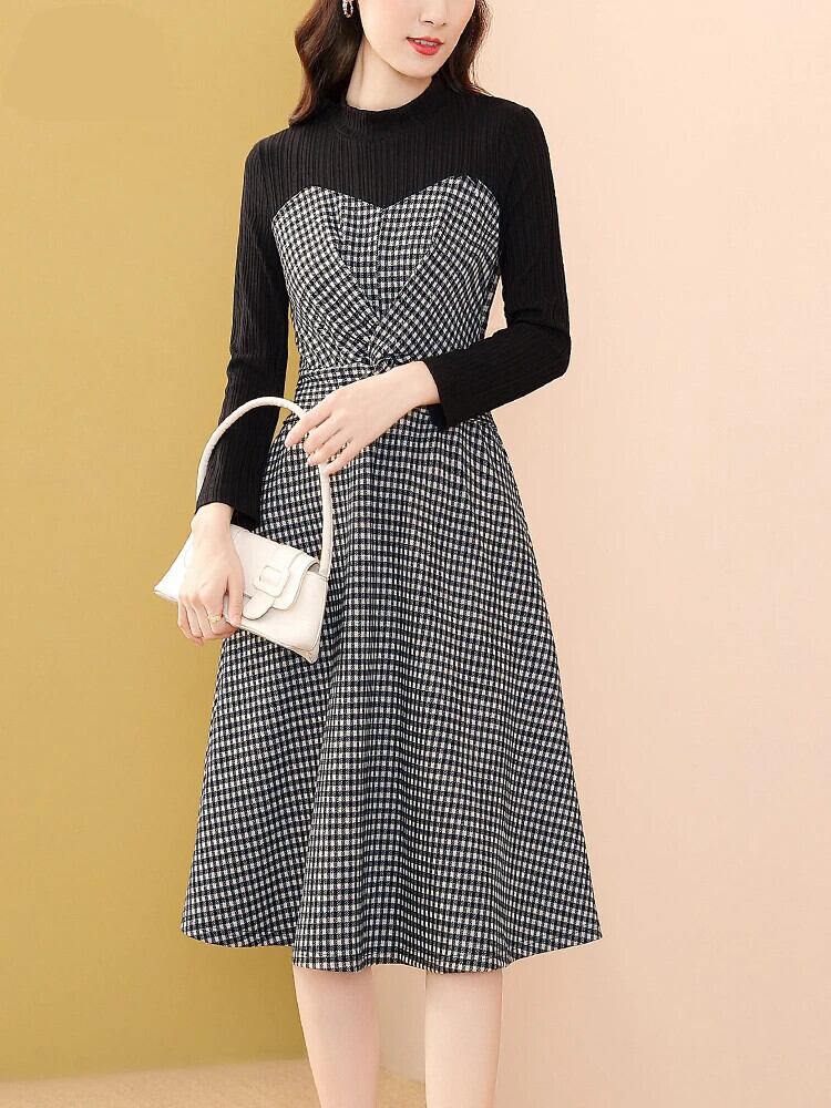送料無料 アパレル EVNISI Schwarz Nähte Plaid Kleid Frauen Mid-länge Winter Dünne Gestrickte Kleid Langarm Urlaub Vestidos 2022 Herbst ウィンター 冬物 AE12125556669434391157 | mihatudai(みはつばい)ネットショッピングならmihatudai