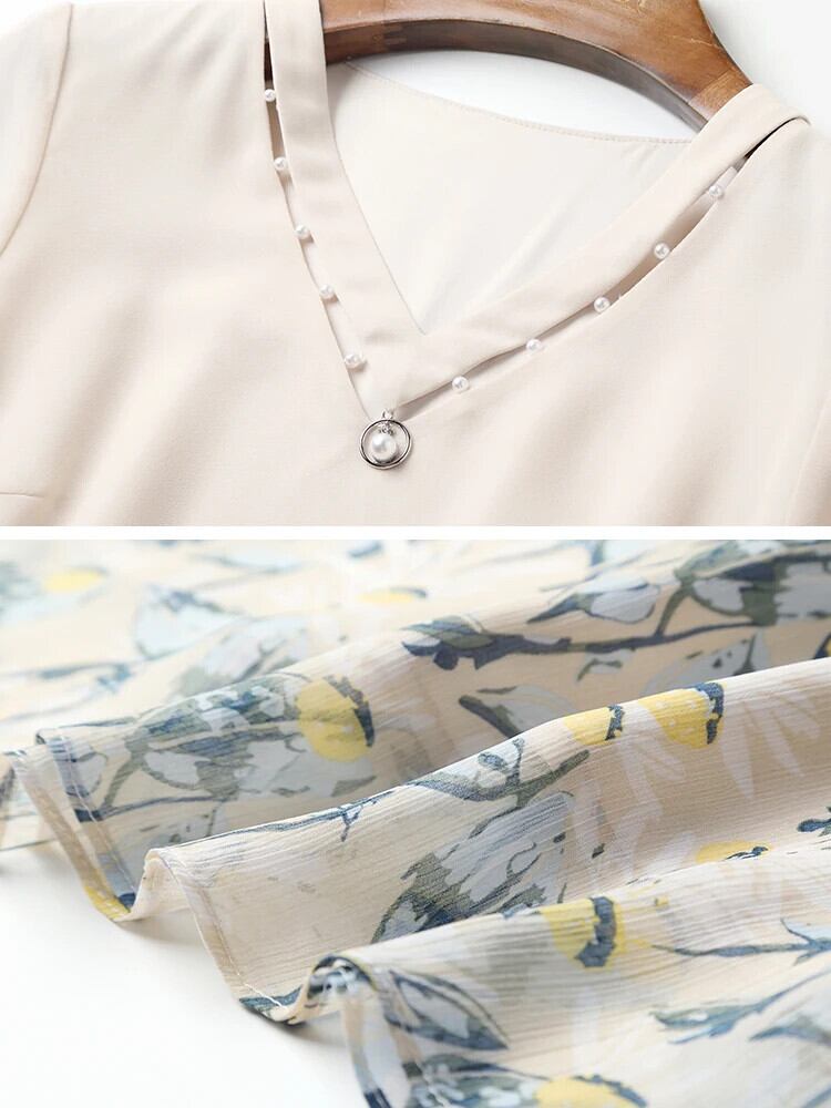 送料無料 アパレル Evnisi Frauen gefälschte zweiteilige Set Chiffon Kleid Sommer Aprikose A-Linieエレガントシュランケ クライダー V-アウシュニット Druck für Frauen Büro Vestido シフォン AE12125556637502897493 | mihatudai(みはつばい)ネットショッピングならmihatudai