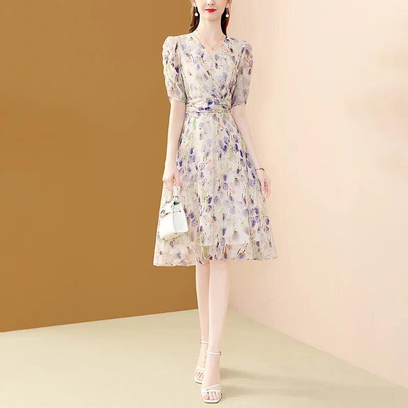 送料無料 アパレル Evnisi Frauen Blumen druck Chiffon Kleid V-Ausschnittエレガントビューロ A-Linie Kleider Kurzarm für Frauen Party Vestido Sommer シフォン AE1212555668619449254 | mihatudai(みはつばい)ネットショッピングならmihatudai