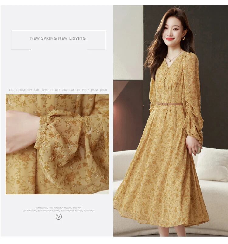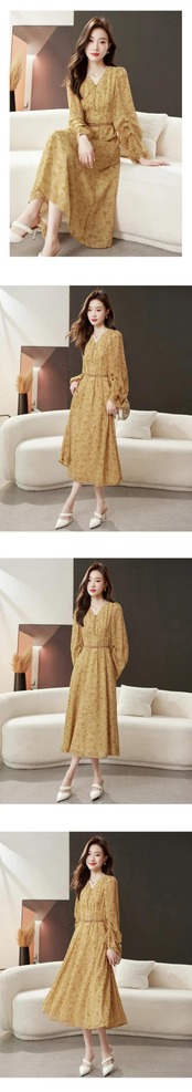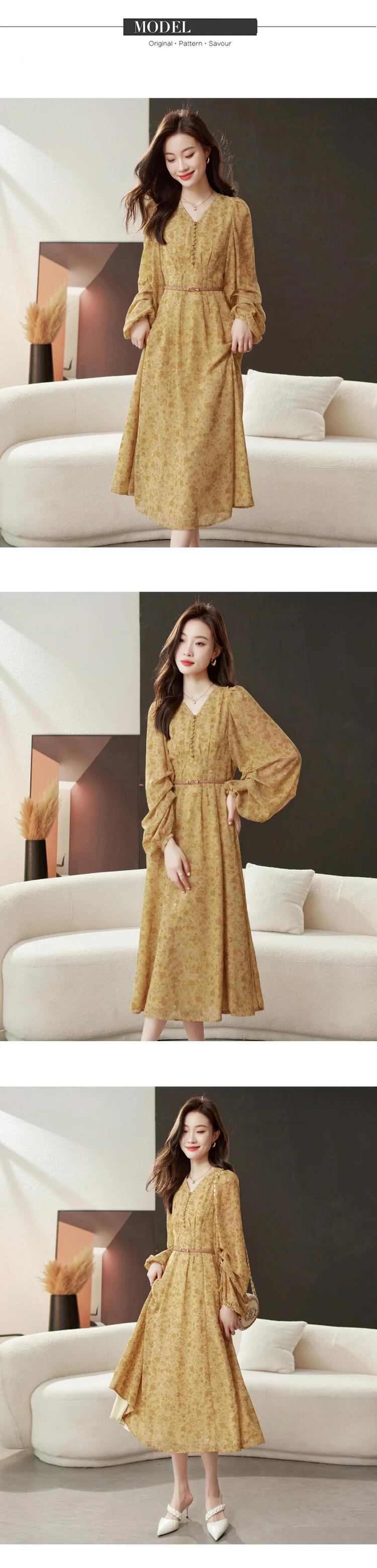 送料無料 アパレル Evnisi Frauen エレガンテス Blumen druck kleid mit Gürtel V-Ausschnitt lässig schlanke A-Linie Kleider lange Ärmel Frauen Party Vestido Herbst エレガント AE12125556674593227695 | mihatudai(みはつばい)ネットショッピングならmihatudai