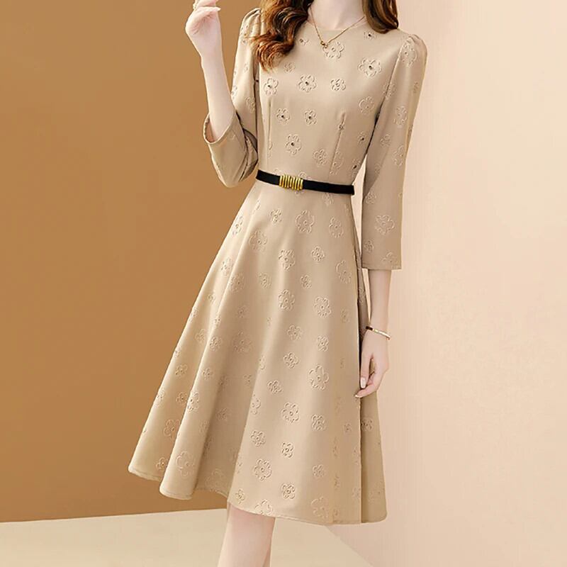 送料無料 アパレル Evnisi Frauen schickes Blumen Stickei Kleid mit Gürtel O-Ausschnitt lässig schlanke Büro A-Linie Kleider Party Frauen Fee Vestido 2024 AE12125556625138155155 | mihatudai(みはつばい)ネットショッピングならmihatudai