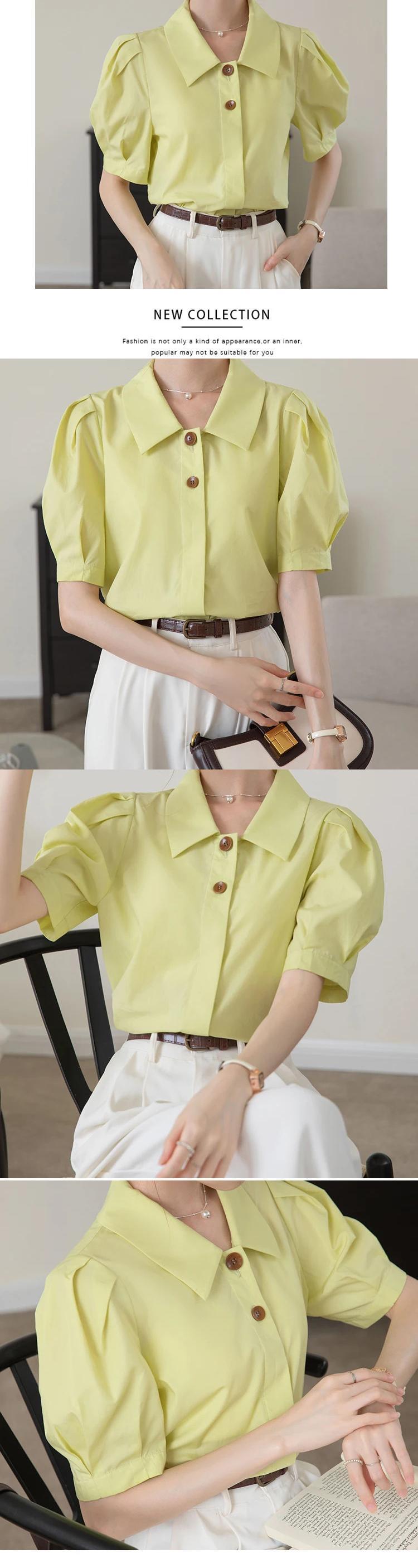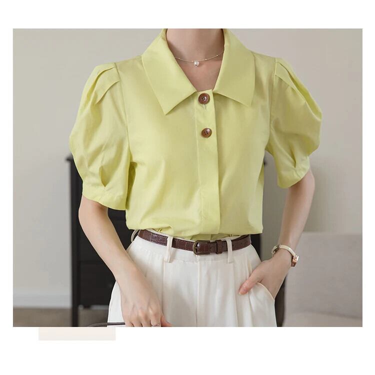 送料無料 アパレル Evnisi Frauenelegante Seide Puff ärmel Hemd Knopf oben los lässige Büro Bluse Polo Kragen Frauen Mode Tops Sommer エレガント AE1212555663943996862 | mihatudai(みはつばい)ネットショッピングならmihatudai