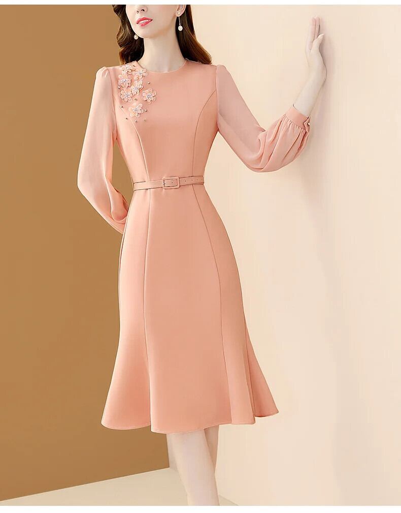送料無料 アパレル Evnisi フラウエン エレガンテ ブルーメン ステッカー クライド ミット ギュルテル O-Ausschnitt lang ärmel ige Büro A-Linie Kleider schicke Frauen Trompete Vestido エレガント AE12125556613273408682 | mihatudai(みはつばい)ネットショッピングならmihatudai