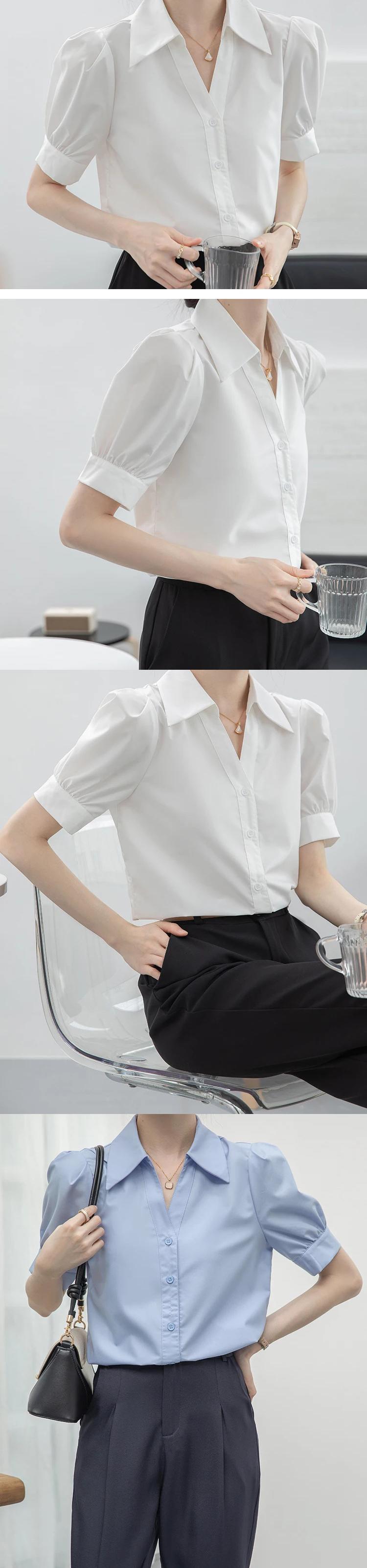 送料無料 アパレル Evnisi Sommer lässig Frauen V-Ausschnitt Kurzarmhemd einreihig エレガント ロッカー Büro weiß トップス schicke Frauen Bluse 2024 AE12125556644546228484 | mihatudai(みはつばい)ネットショッピングならmihatudai