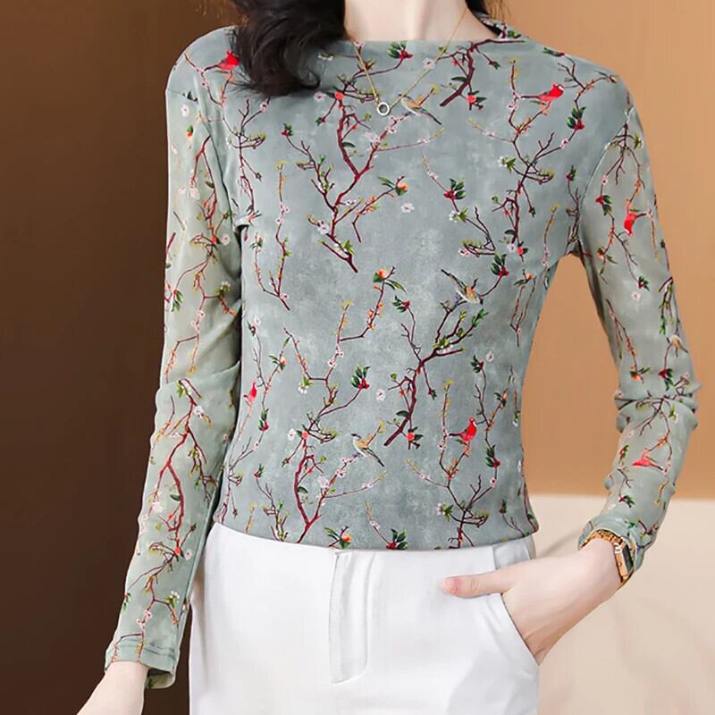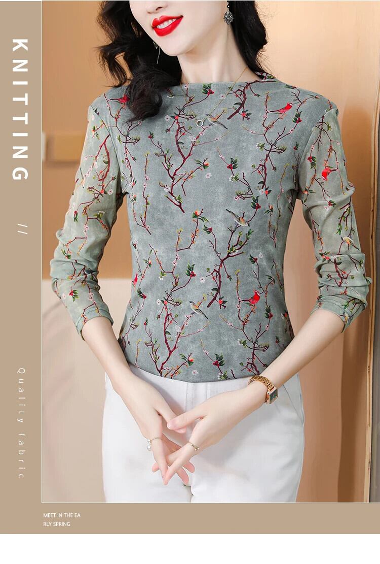 送料無料 アパレル Evnisi Frauen Blumen druck Strick ヘムド モックネック エレガンテ Spitze Büro トップス lang ärmelig lässig für schlanke Bluse Herbst エレガント AE12125556679092877490 | mihatudai(みはつばい)ネットショッピングならmihatudai