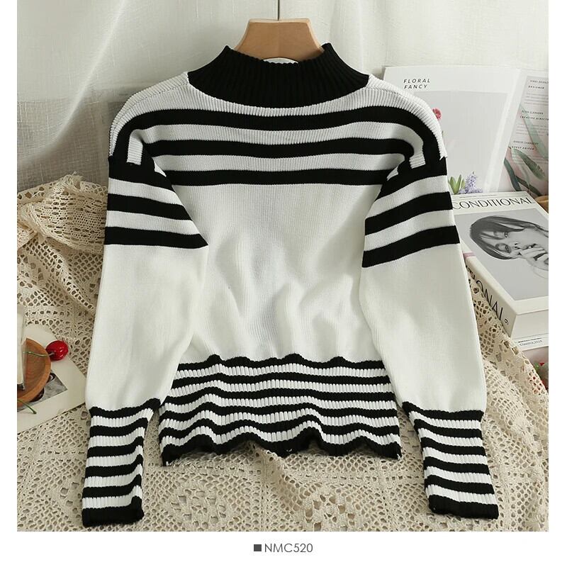送料無料 アパレル Evnisi koreanischen Chic Frühling Vintage-Stil Reiß verschluss Stand Kragen Taille プルオーバー Frauen lang ärmel ige gestrickte gestreifte Strickjacke Mantel ビンテージ AE12125556666188981478 | mihatudai(みはつばい)ネットショッピングならmihatudai