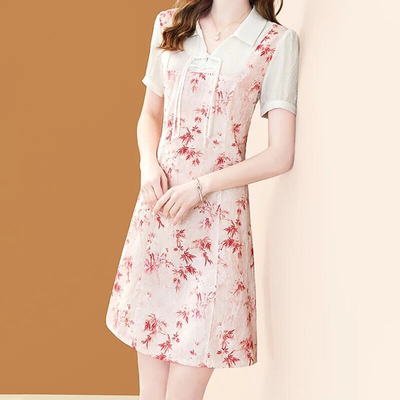 送料無料 アパレル Evnisi Sommer Frauen Blumen druckelegantes Kleid Vintage Knopf chinesischen Stil rosa A-Linie Kleider Frauen lässig Fee チャイナドレス エレガント ビンテージ AE12125556626991175599 | mihatudai(みはつばい)ネットショッピングならmihatudai