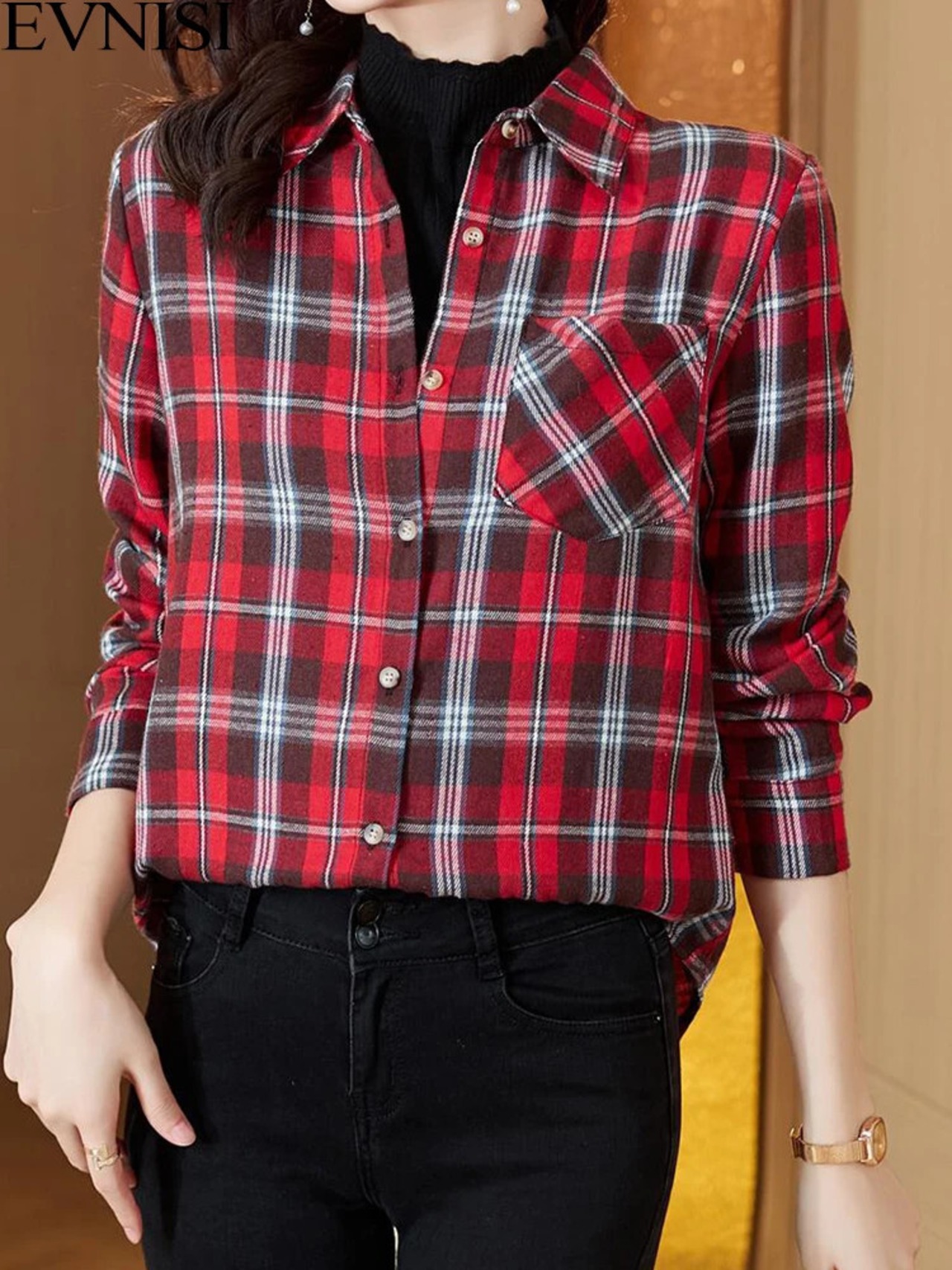 送料無料 アパレル Evnisi ヴィンテージチェック柄シャツ Vrouwen Herfst Lange Mouw Knop Up Polo-Hals シャツ Alle-Match 秋ストリートウェア ブラウス ビンテージ AE12125556681871321173 | mihatudai(みはつばい)ネットショッピングならmihatudai