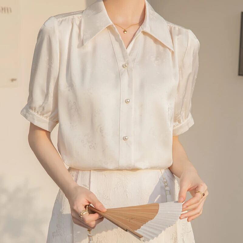 送料無料 アパレル Evnisi Sommer Frauenelegante Blumen druck シャツ schicke Perle Knopf Kurzarm Büro Bluse lässig Frauen loss トップス 2024 エレガント AE12125556628617932748 | mihatudai(みはつばい)ネットショッピングならmihatudai