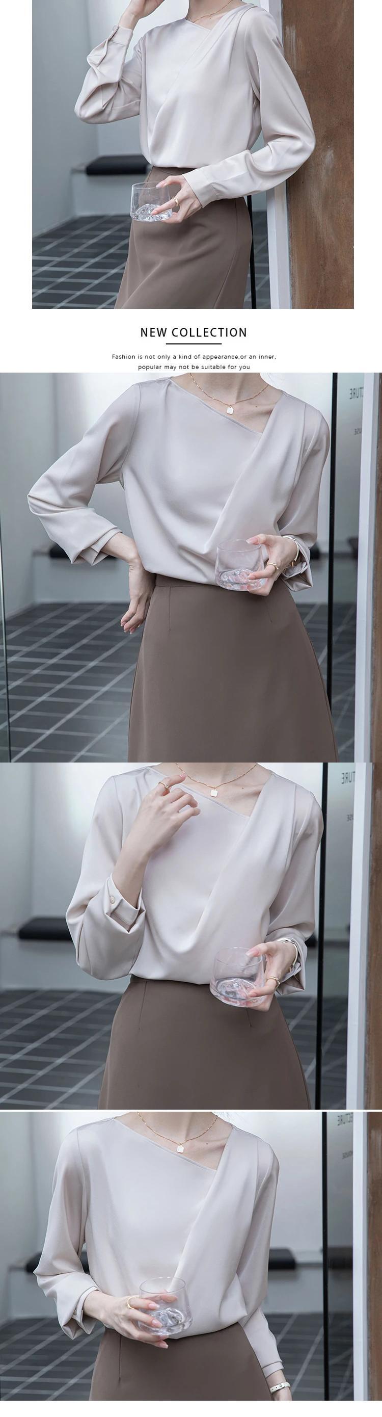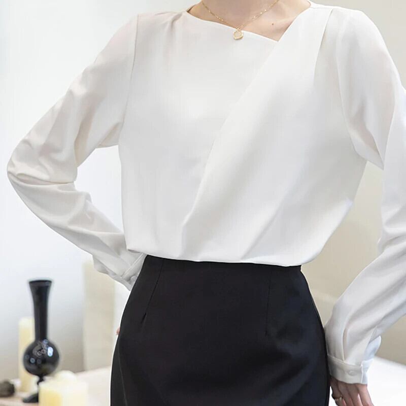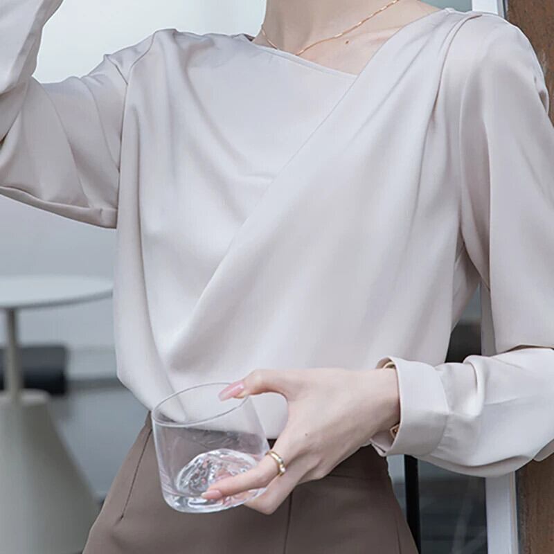 送料無料 アパレル Evnisi Frühling Herbstelegante Frauen Seide Langarmhemd lässig los Büro Bluse schicke unregelmäßige Frauen プルオーバー トップス 2024 エレガント AE12125556652765310567 | mihatudai(みはつばい)ネットショッピングならmihatudai