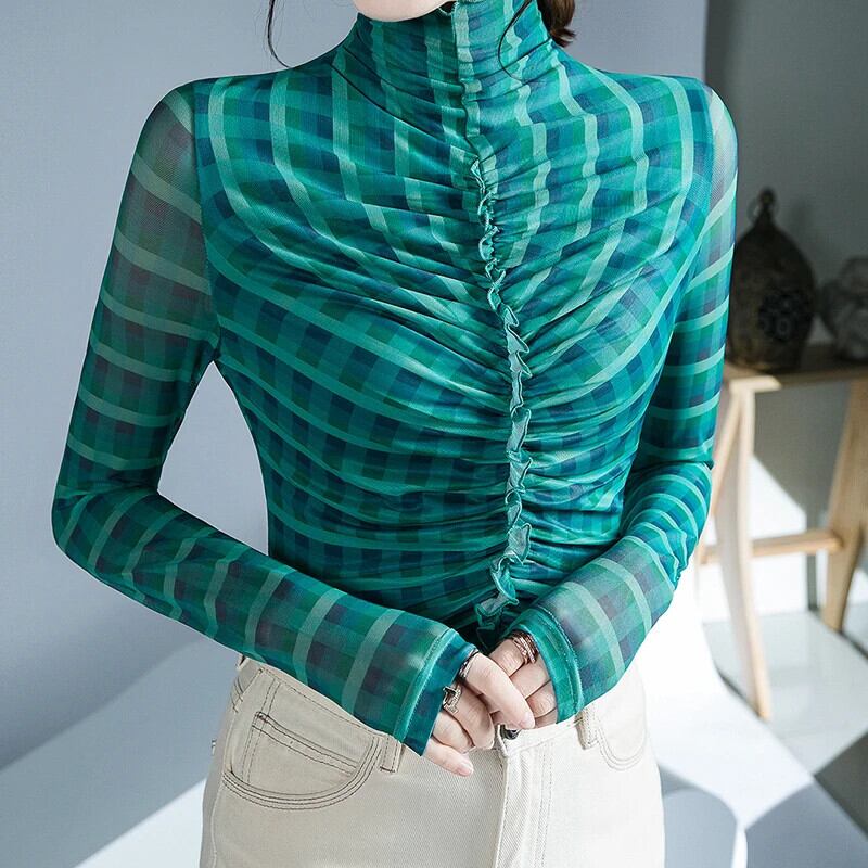送料無料 アパレル Evnisi Frauen チェック柄パッチワーク Falten ヘムド モックネック メッシュ Langarm Bluse Nachtclub ストリート トップ Frauen Herbst プルオーバー AE12125556688982174856 | mihatudai(みはつばい)ネットショッピングならmihatudai