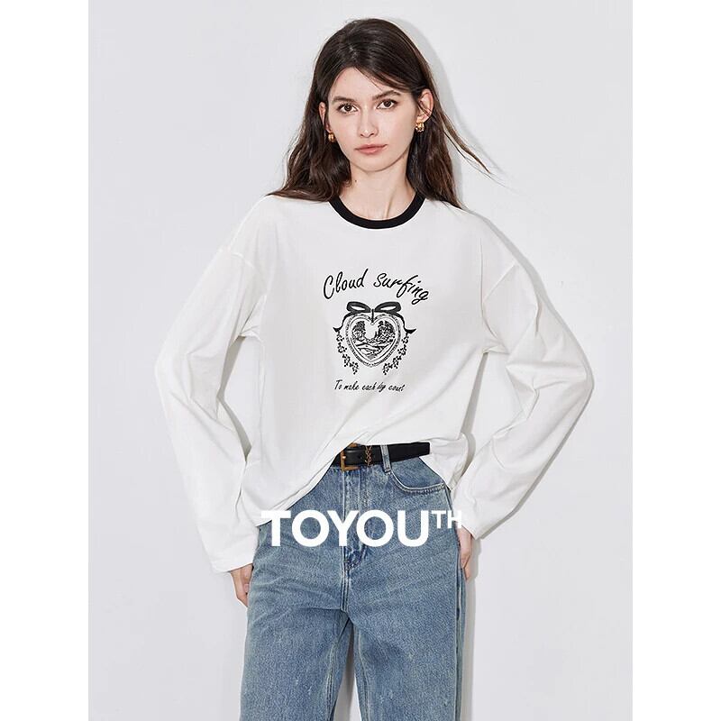 送料無料 アパレル Toyouth Frauen Tシャツ Herbst neue Liebe gedruckt Kontrast Rundhals ausschnitt Langarm Base Tops AE332328878732601352948 | mihatudai(みはつばい)ネットショッピングならmihatudai