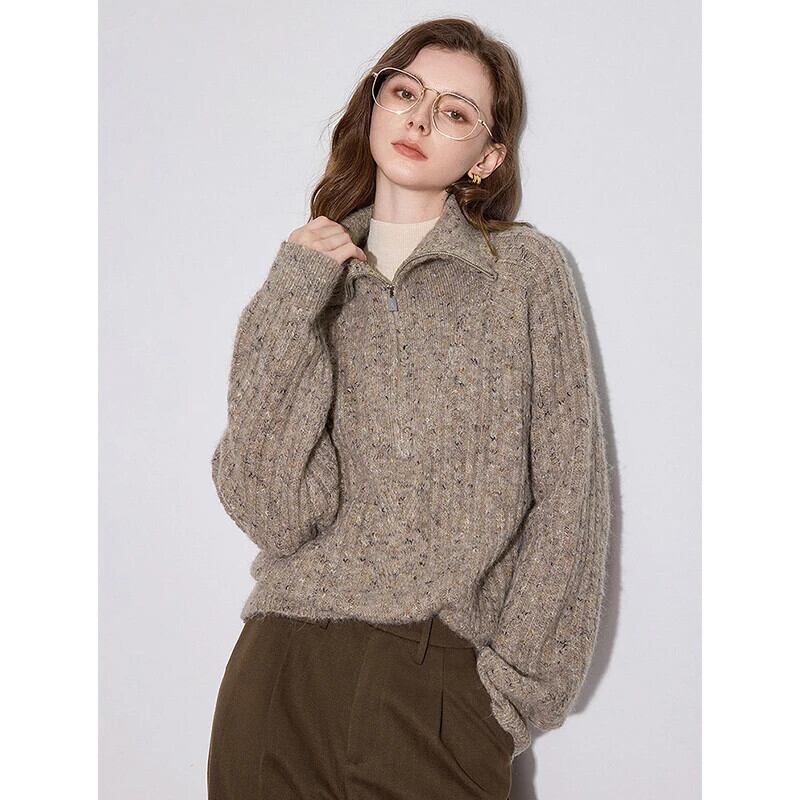 送料無料 アパレル TOYOUTH Frauen プルオーバー 2024 Herbst 冬 Neue Schafe Wolle ジッパー POLO Kragen Thicking Warme プルオーバートップス ウィンター 冬物 AE332328878727340985683