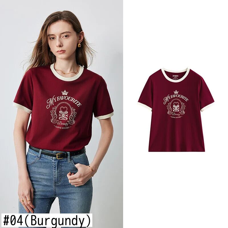 送料無料 アパレル Toyouth Frauen Tシャツ 2024 Sommer neue 5a anti bakterielle Baumwolle Kontrast Rundhals bedruckte トップス AE332328878736209754331 | mihatudai(みはつばい)ネットショッピングならmihatudai