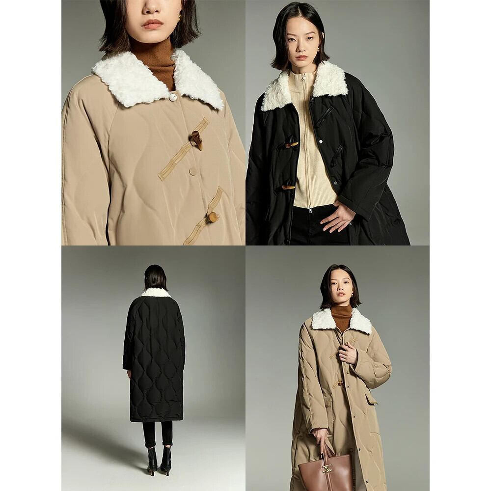 送料無料 アパレル Toyouth Frauen lange Daunen jacke 2023 Winter Plüsch Revers los Dicken Mantel Horn Knopf Mode vielseitige Khaki schwarzen Mantel ウィンター 冬物 AE332328878766130968609 | mihatudai(みはつばい)ネットショッピングならmihatudai