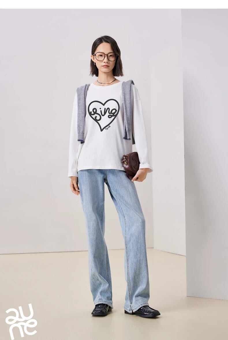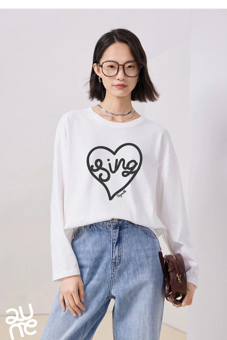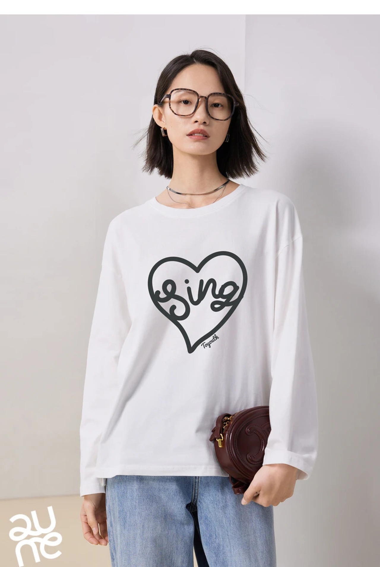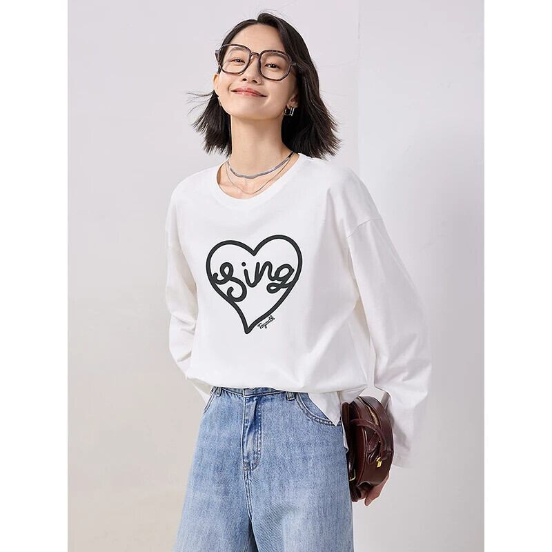 送料無料 アパレル TOYOUTH フラウエン ランガルム Tシャツ 2024 Herbst Neue LIEBE Muster Brief Gedruckt Reine Baumwolle Basis Weiß トップス AE332328878734733905457 | mihatudai(みはつばい)ネットショッピングならmihatudai
