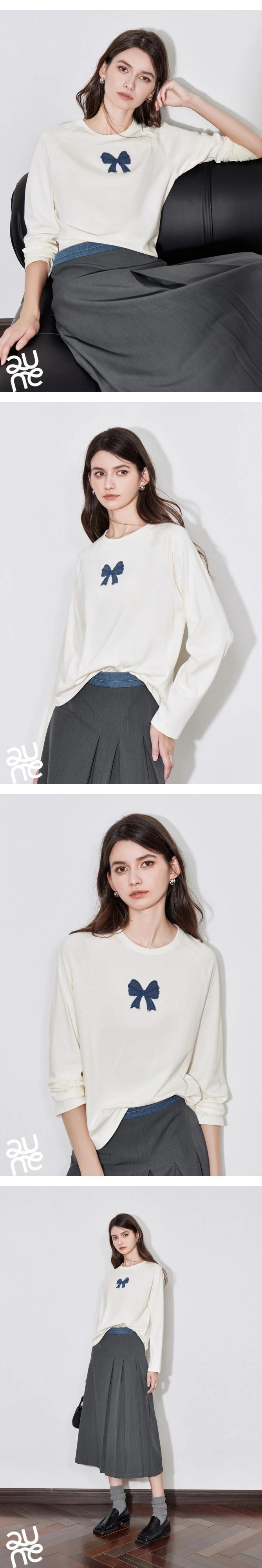 送料無料 アパレル TOYOUTH Frauen Tシャツ 2024、Herbst Neue デニム Bogen Kontrast Farbe Raglan Ärmel プルオーバートップス AE332328878794978474337 | mihatudai(みはつばい)ネットショッピングならmihatudai