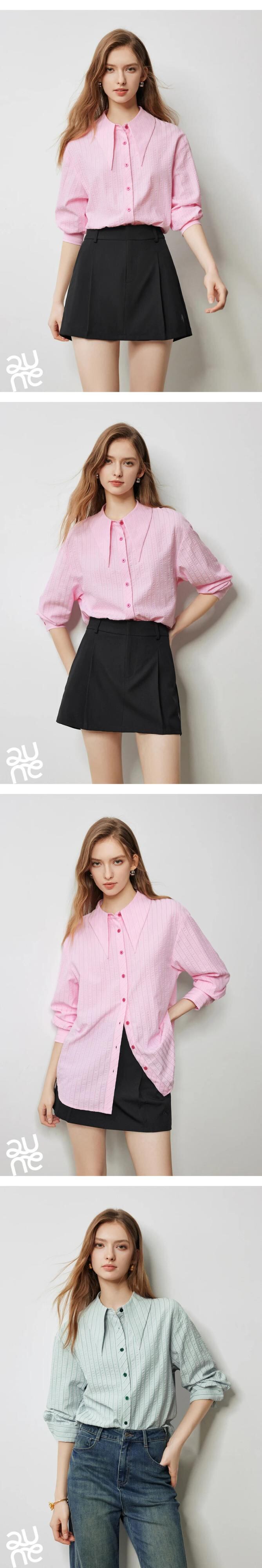 送料無料 アパレル Toyouth Frauen Bluse シャツ Herbst neue gestreifte Langarm Einreiher Knopf Peter Pan Kragen トップス AE332328878761976726612 | mihatudai(みはつばい)ネットショッピングならmihatudai