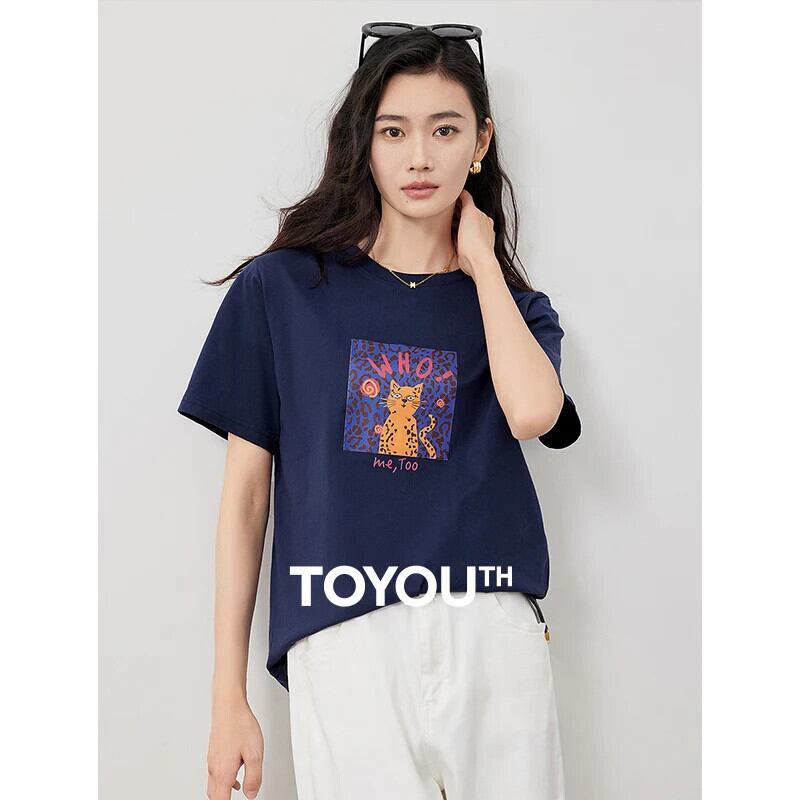 送料無料 アパレル Toyouth Tシャツ Frauen Sommer neue Katze druken los Rundhals ausschnitt Schulter schlanke reine Baumwolle トップ AE332328878729698014089 | mihatudai(みはつばい)ネットショッピングならmihatudai