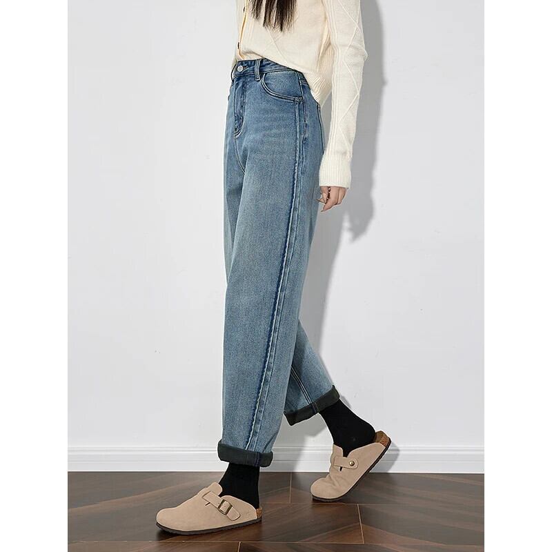 送料無料 アパレル TOYOUTH Damen-Fleece-Denim-Jeans、2024、Herbst und Winter、neuer Streetwear-Stil、gerades、weites Bein、hellblaue Bananenhose ストリート ウィンター 冬物 AE332328878718658514775 | mihatudai(みはつばい)ネットショッピングならmihatudai