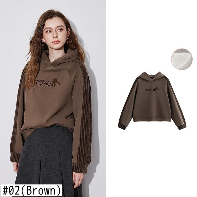 送料無料 アパレル TOYOUTH Frauen パーカー スウェットシャツ 2024、Herbst and Winter、neue フリース-Buchstaben-Stickerei、Spleißen、Kapuzenpullover、トップス ウィンター 冬物 AE332328878796177876908 | mihatudai(みはつばい)ネットショッピングならmihatudai