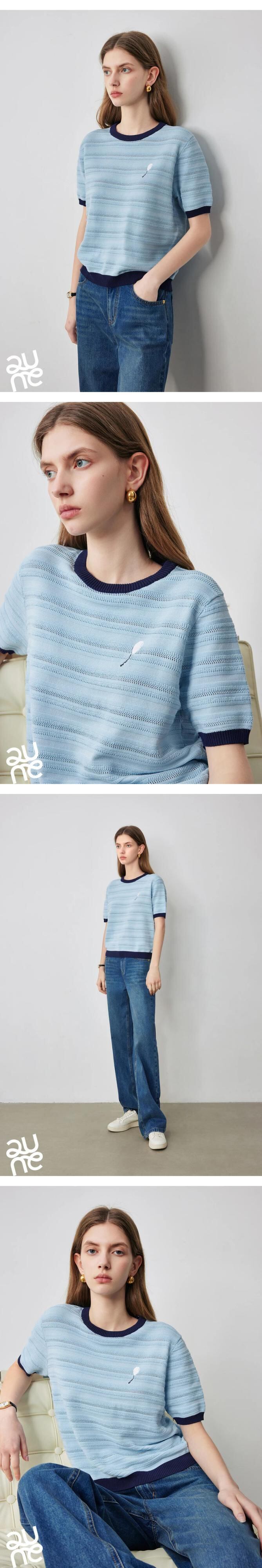 送料無料 アパレル Toyouth Frauen Strickwaren 2024 Sommer neue Kontrast farbe aushöhlen Rundhals-Eis gefühl トップス AE332328878752834769129 | mihatudai(みはつばい)ネットショッピングならmihatudai