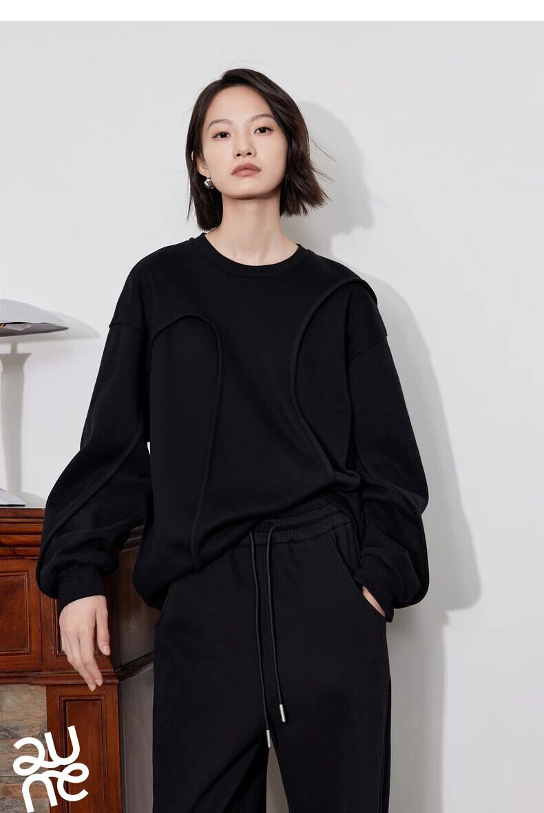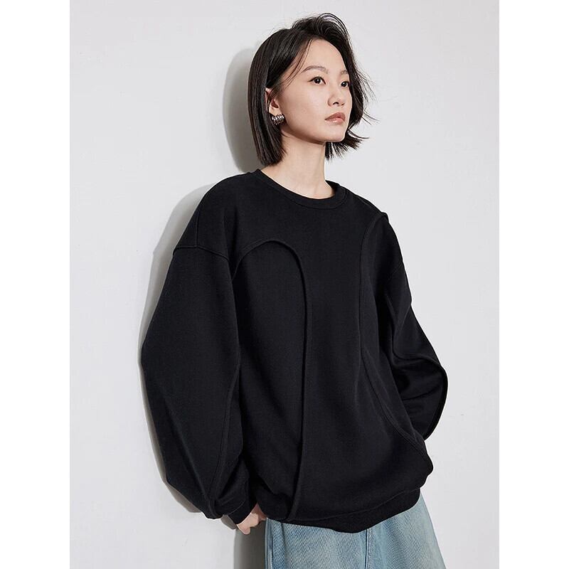 送料無料 アパレル Toyouth-フリースフーディースウェットシャツ、ラウンドネックプウィメンズルオーバー、厚い手のトップス、ブラック、レイジーなスタイル、トレンディ、秋、冬、2021 AE332328878774608906775 | mihatudai(みはつばい)ネットショッピングならmihatudai