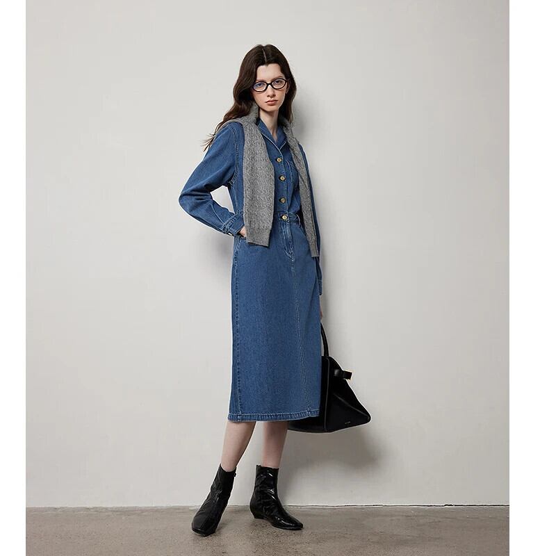 送料無料 アパレル Toyouth-膝丈デニムドレス、ミドルレングス、ラペルカラー、スカイブランコカット、エレガントなストリートウェア、新しい秋のコレクション2022 AE332328878784419049005 | mihatudai(みはつばい)ネットショッピングならmihatudai