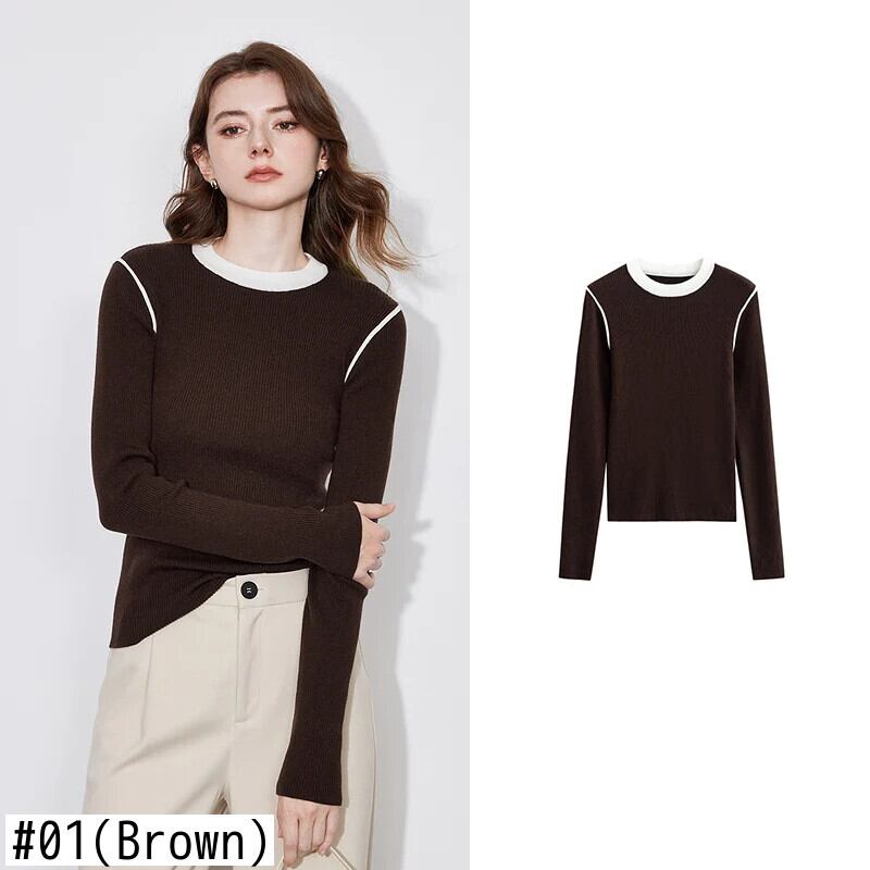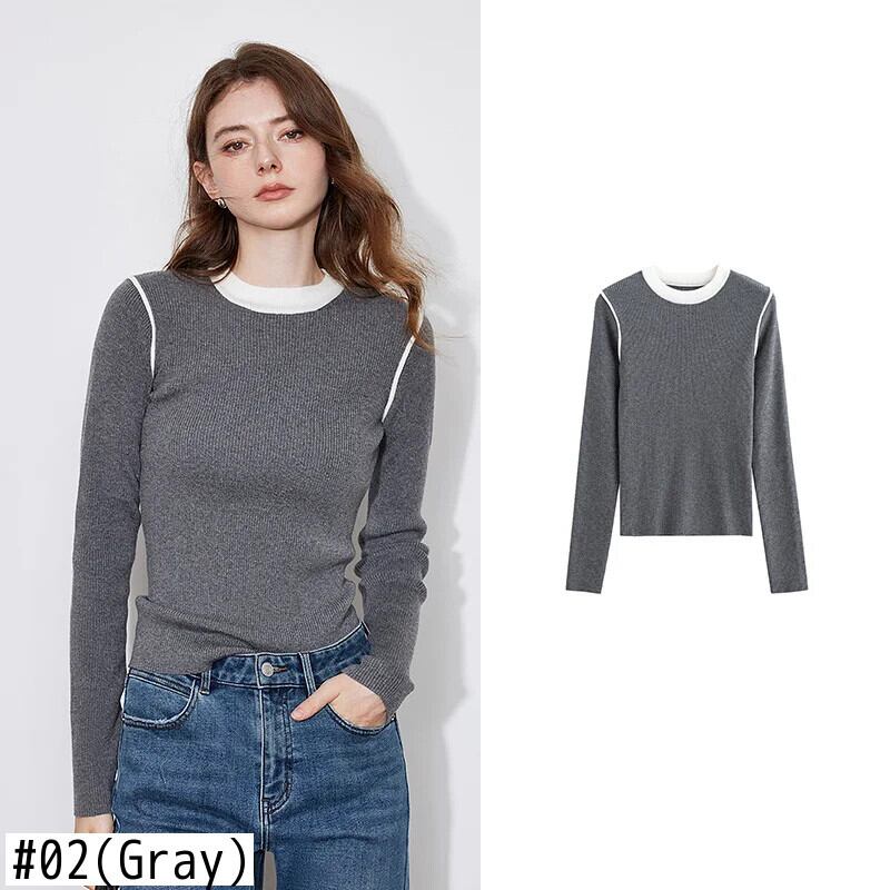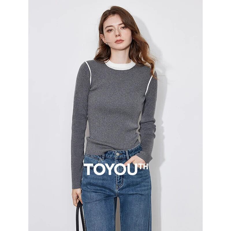 送料無料 アパレル TOYOOUTH 女性ニットセーター 2024 秋と冬フェイクツーピース対照的なカラーラウンドネックスリムフィットプルオーバートップス オータム 秋物 ウィンター 冬物 Oネック AE332328878756927909793 | mihatudai(みはつばい)ネットショッピングならmihatudai