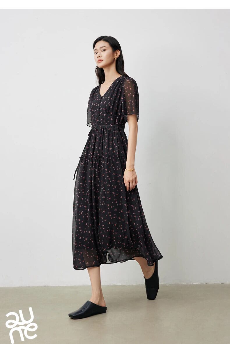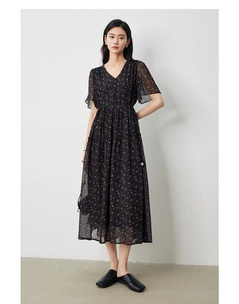 送料無料 アパレル Toyouth-花草の黑のシフォンドレス、Vネック、ハーフスリーブ、スリムウエスト、エレガントナイブウェアニング、新しいコレクション2022 AE332328878733405132058 | mihatudai(みはつばい)ネットショッピングならmihatudai