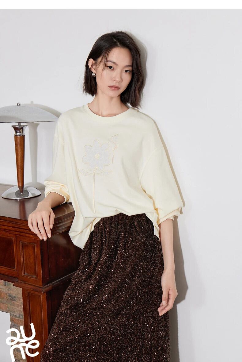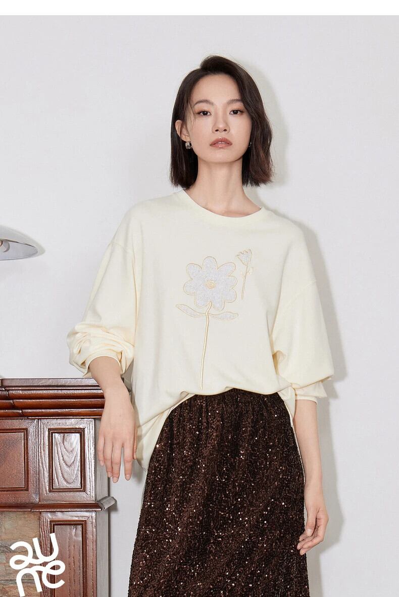 送料無料 アパレル Toyouth-のthorn新しい刺繍フラワーパッチワーク長袖ラウンドネックプルオーバー、ベージュのボトムトップス、Tシャツ、Autumn, 2024 AE332328878775757950530 | mihatudai(みはつばい)ネットショッピングならmihatudai