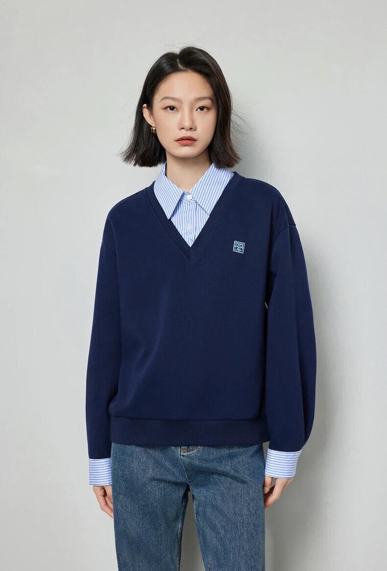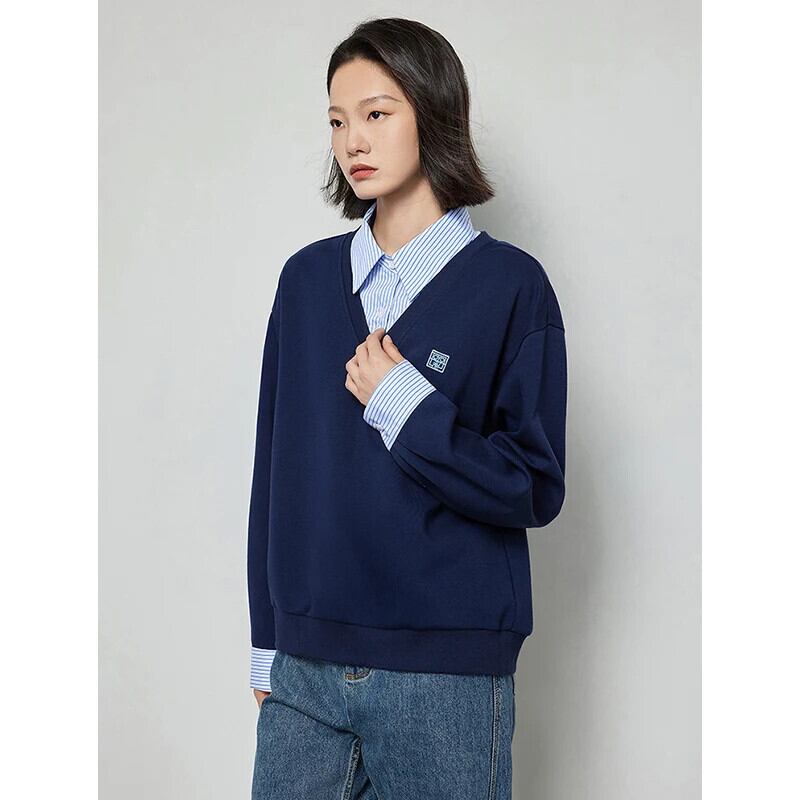 送料無料 アパレル Nach Jugend Frauen gefälschte zweiteilige スウェットシャツ 2024 Herbst neue kontrastierende Pathwork gestreiften Polo-Kragen Langarm lässig プルオーバー トップ AE332328878784977059852 | mihatudai(みはつばい)ネットショッピングならmihatudai