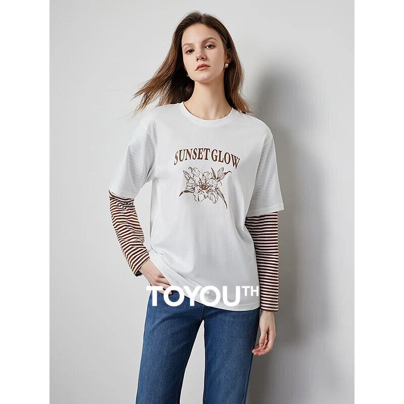 送料無料 アパレル Toyouth T シャツ Frauen Frühling 2024 neue 5a anti-bakterielle gespleißte lang ärmel ige gefälschte zweiteilige トップ Tシャツ AE332328878794535426676 | mihatudai(みはつばい)ネットショッピングならmihatudai