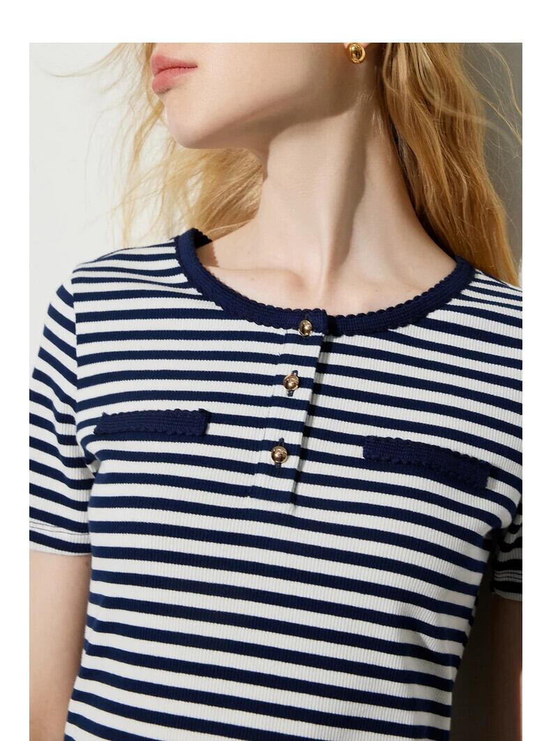 送料無料 アパレル Toyouth Frauen T シャツ 2024 サマー ノイエ スリム フィット Kurzarm gestreifte Rundhals-T シャツ トップ Tシャツ AE332328878793825888301 | mihatudai(みはつばい)ネットショッピングならmihatudai