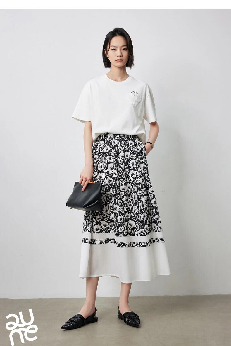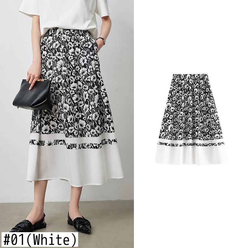 送料無料 アパレル Toyouth Frauen Rock 2024 Sommer neue Blumen gedruckt Kontrast farbe gespleißt elastische Taille schlanke A-Linie knöchel langen Rock AE33232887871035888651 | mihatudai(みはつばい)ネットショッピングならmihatudai