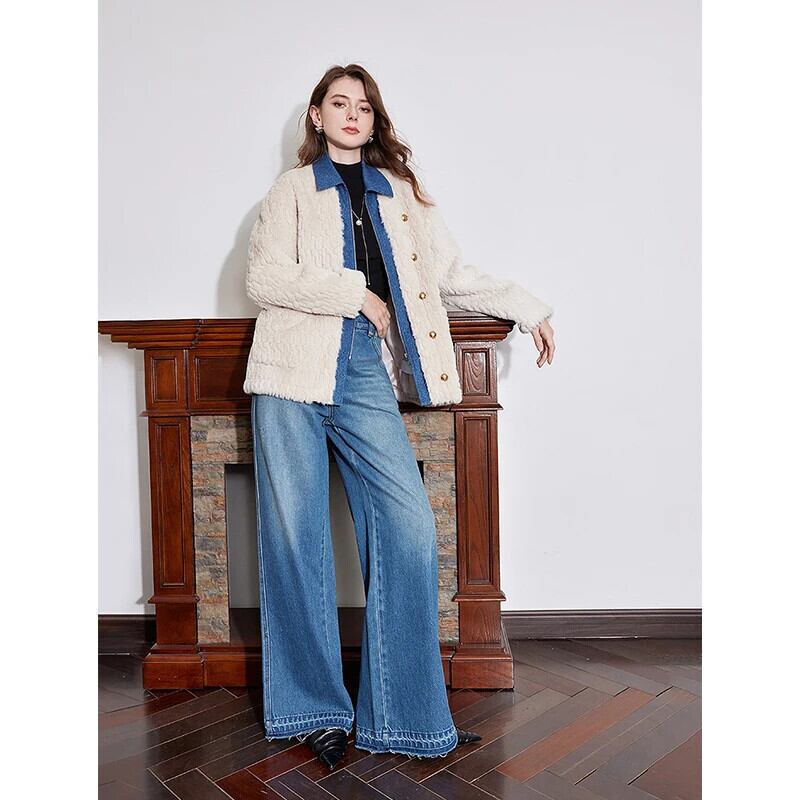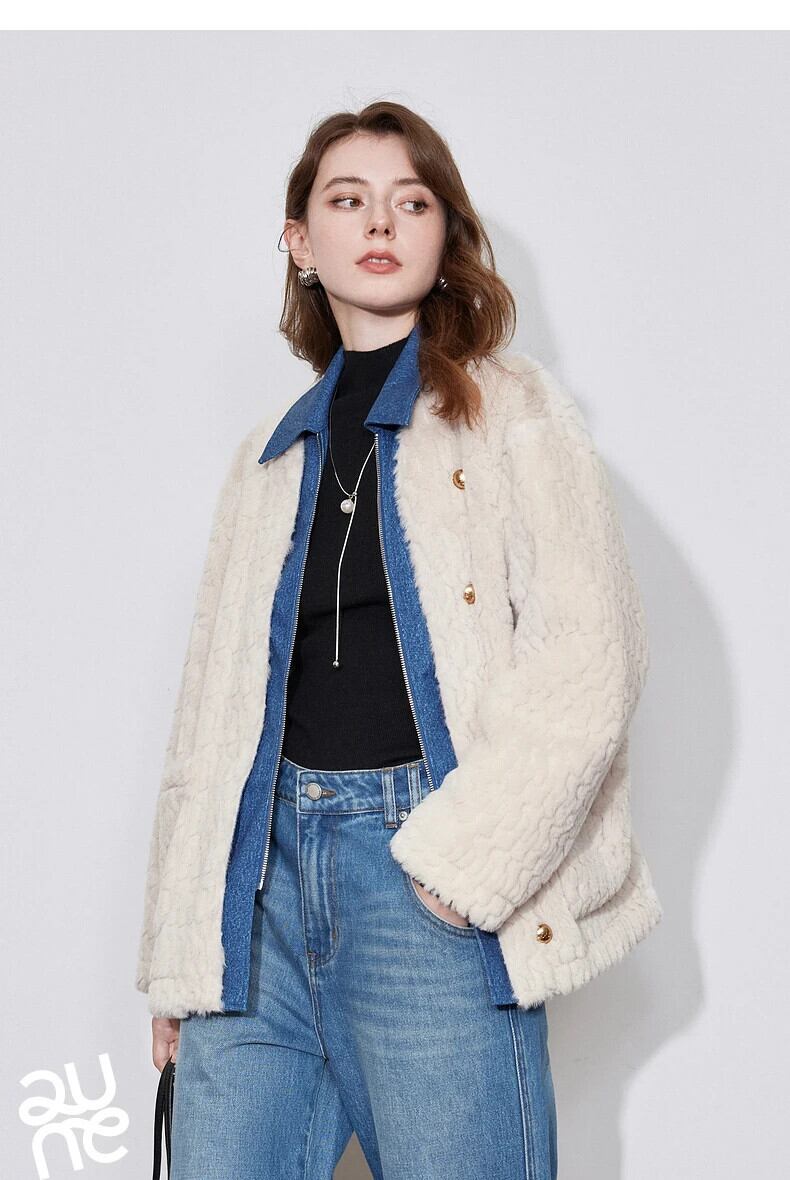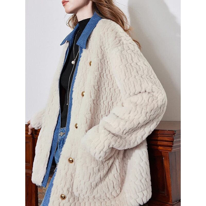 送料無料 アパレル Toyouth-Women'sのウサギのファーデニムプライシングジャケット、锒折りたんだ、厚手で暖かいかいアウター、コットンコート、冬、新作しい、2022 AE332328878723077853615