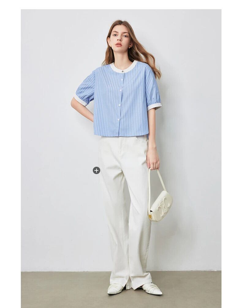 送料無料 アパレル Toyouth-Women's スタイルの青と白のストライプのシャツ、ボタン、五分袖のブラウス、人気のトップス、夏、新作、2024 AE332328878726756867489 | mihatudai(みはつばい)ネットショッピングならmihatudai