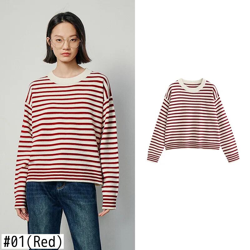 送料無料 アパレル Toyouth-レディース長袖シャツ、クラシックストライプニットウェア、暖かいかいソフトウェア、ギフトとしてのトップス、2022年春 AE332328878736203126166