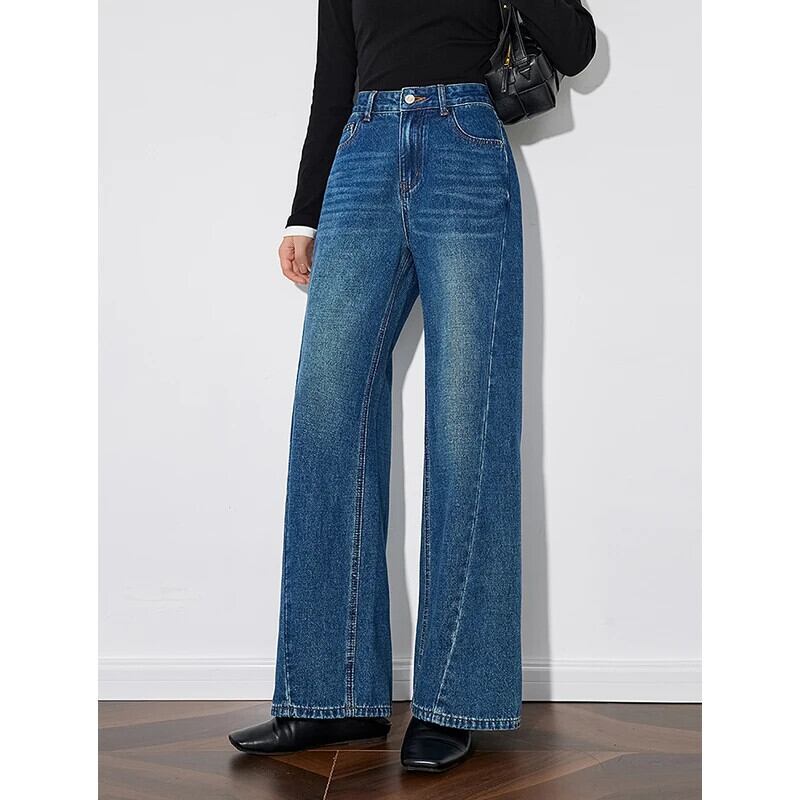 送料無料 アパレル トウユース - レディースブルなミッドウエスト、ストレート、ワイドレッグ、ロングパンツ、秋冬、2022 AE33232887873234914052