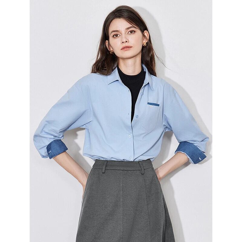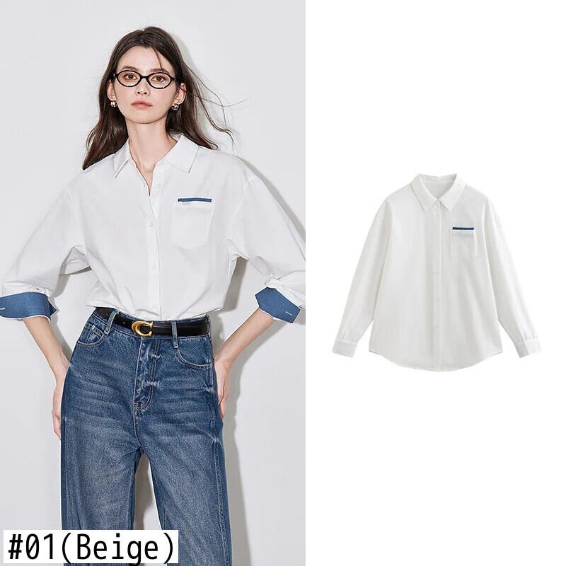 送料無料 アパレル Toyouth-の対色な色の折返しシフロント長袖ブラウス、ブラウストップス、新しいポケットデザイン、2022年秋 AE332328878793678430812 | mihatudai(みはつばい)ネットショッピングならmihatudai