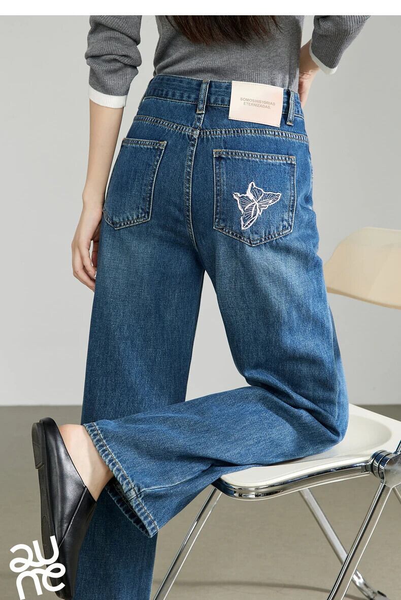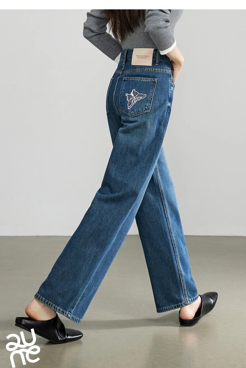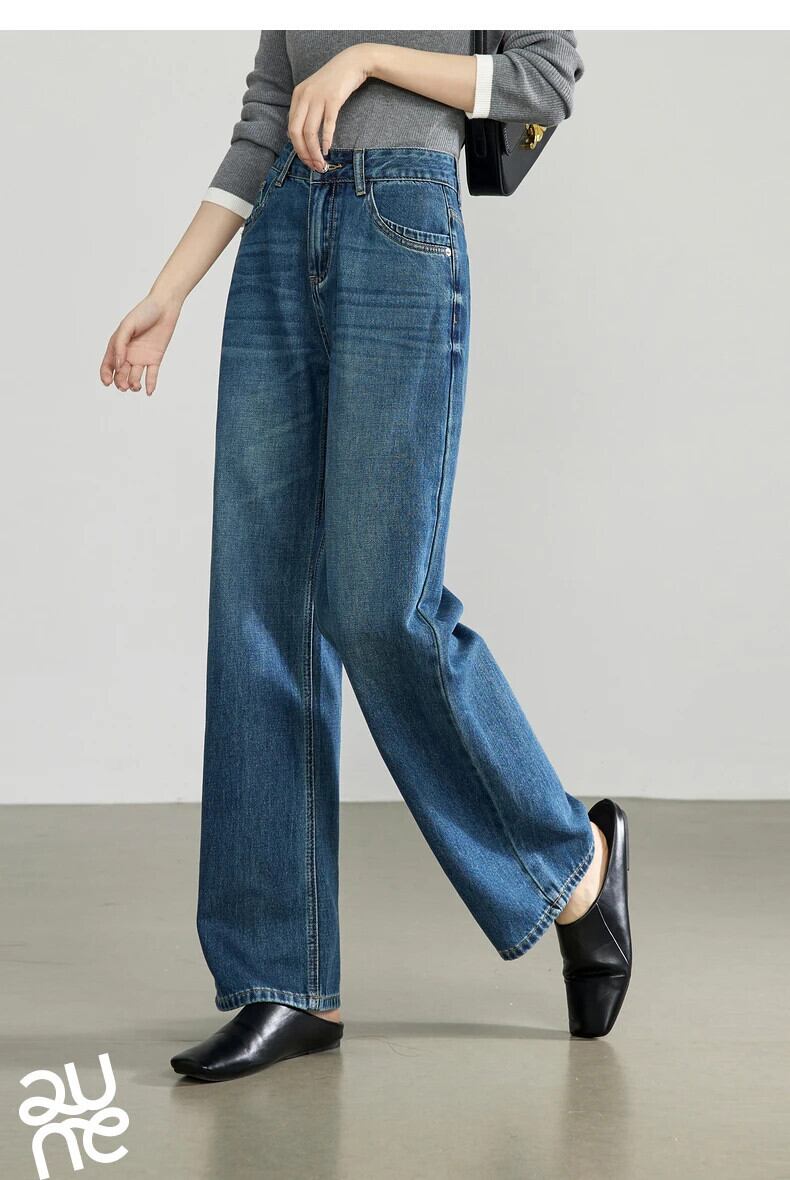 送料無料 アパレル Toyouth-Women's ストレートワイドレッグデニムジーンズ、ミドル张ロングパンツ、新しい、2022 年秋 AE332328878726995758460