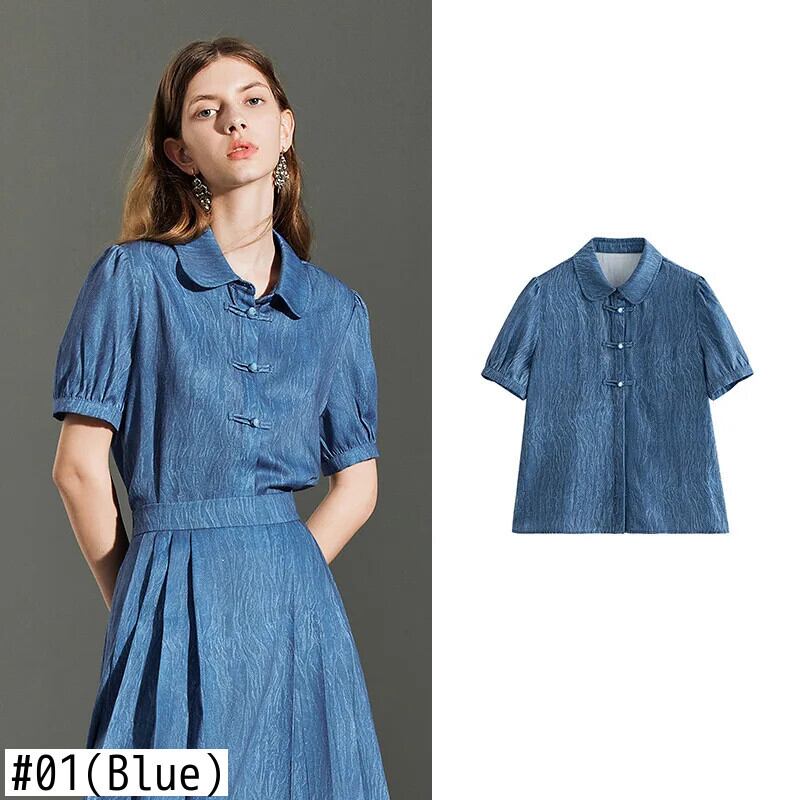 送料無料 アパレル 若者女性のためのエレガントなブルーのシャツ、夏のトップス、新しい中国风スタイル、パフスリーブ、2024 AE332328878727553990936 | mihatudai(みはつばい)ネットショッピングならmihatudai