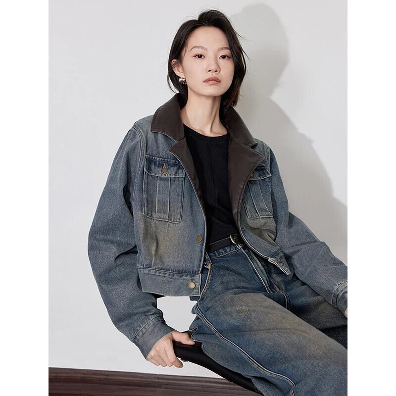 送料無料 アパレル Toyouth-レディース デニムジャケット、ショートスタイル、折り襟、ストリートウェア、コート、秋冬、2022 AE332328878737504441132 | mihatudai(みはつばい)ネットショッピングならmihatudai