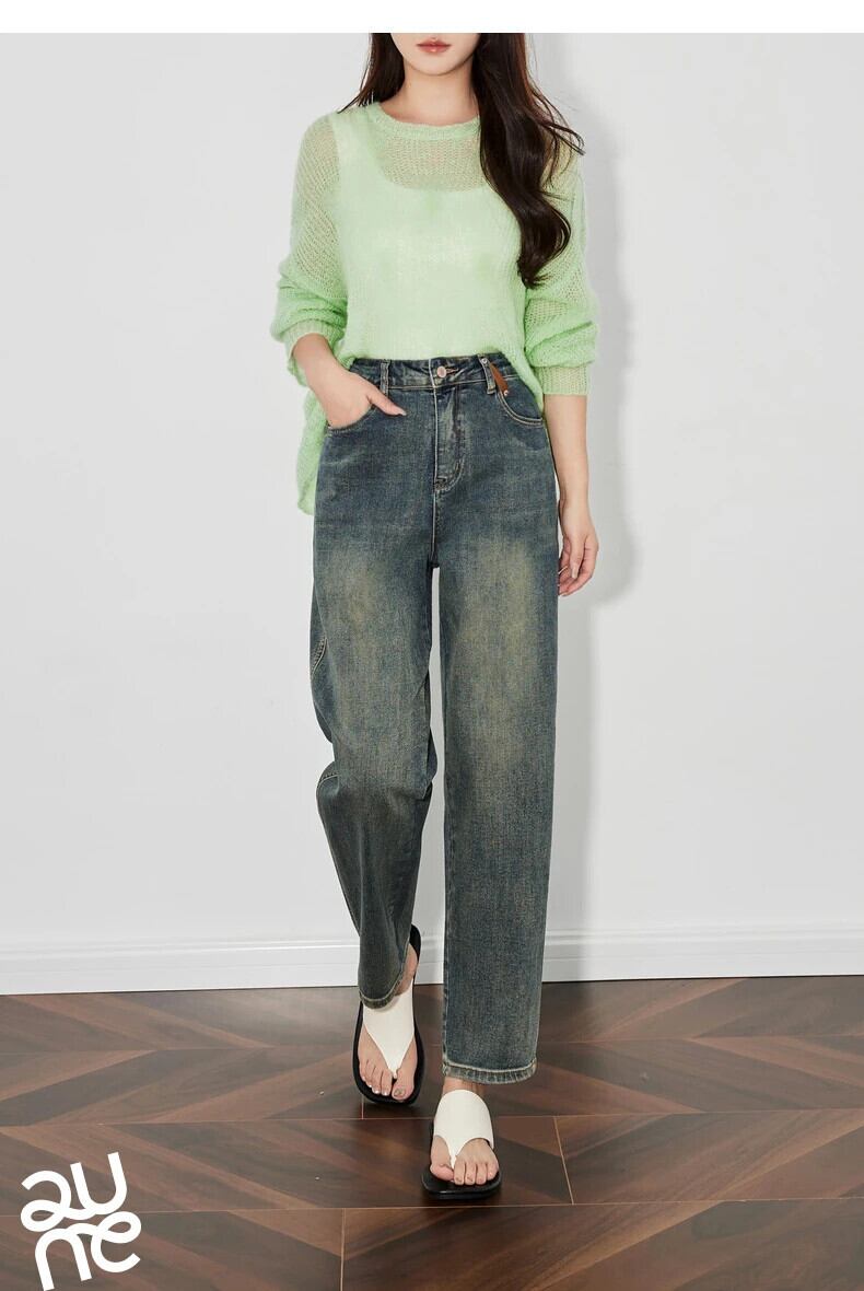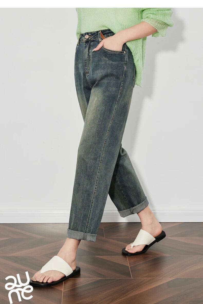 送料無料 アパレル Toyouth-レディース デニムジーンズパンツ、レトロなユーズド加工、ミッドウエスト、洋ナシシェイプ、スリムフィット、ロングパンツ、新作、2022年春 AE332328878763465605461 | mihatudai(みはつばい)ネットショッピングならmihatudai